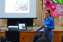 15 ноября заведующая отделением хореографии, преподаватель Шарифуллина Гузель Ильдаровна провела для своих воспитанников и всех желающих лекцию-презентацию «Ансамбль народного танца Игоря Моисеева», в которой ознакомила с творчеством, историей создания прославленного коллектива и его основоположником И.Моисеевым.