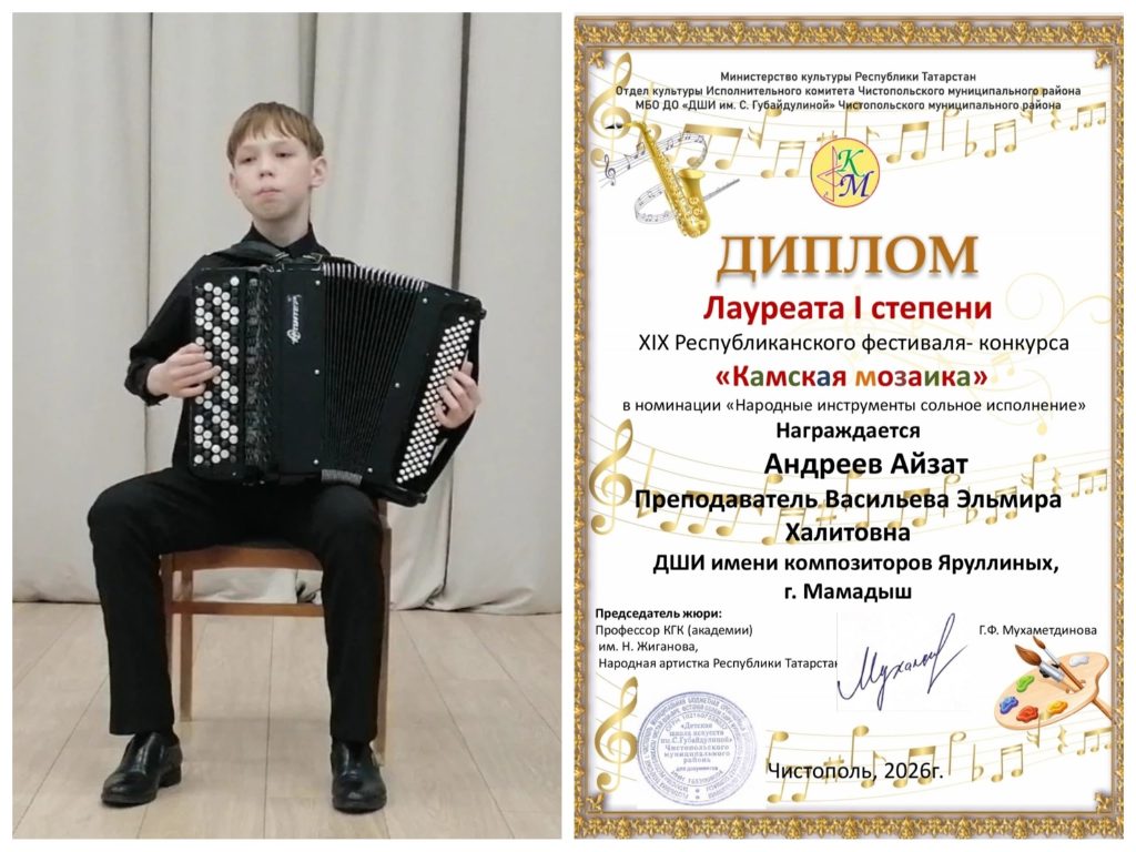 🏆 Андреев Айзат — лауреат 🥇 степени,